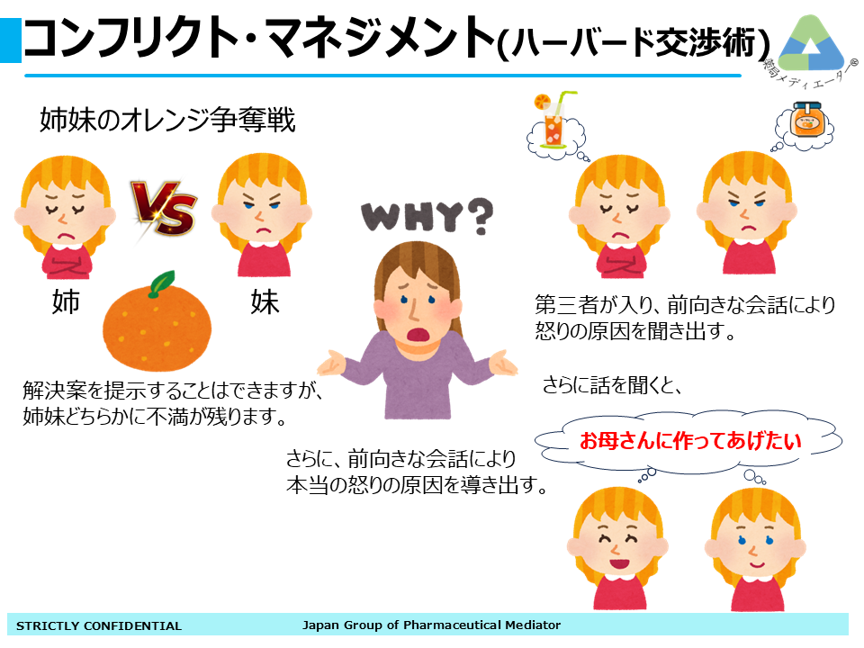 一方で、コンフリクト・マネジメント(紛争管理)の手法であるメディエーション(調停・